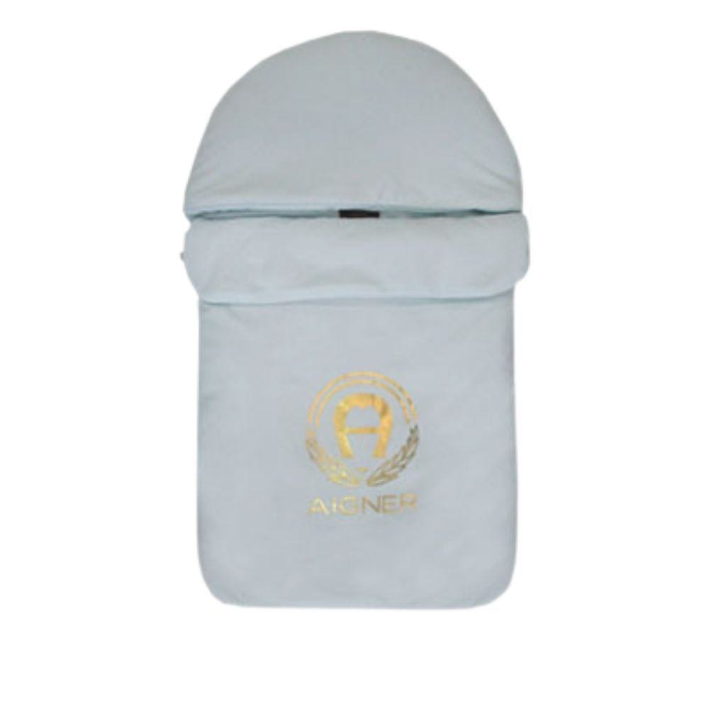 Blue and gold baby nest for baby boys by Aigner. Made from lightly padded cotton, it features the brands iconic horseshoe logo and brand name print in gold foil on the front. For easy access, it fastens with a zip down one side and along the bottom. Matching items available to purchase separately.