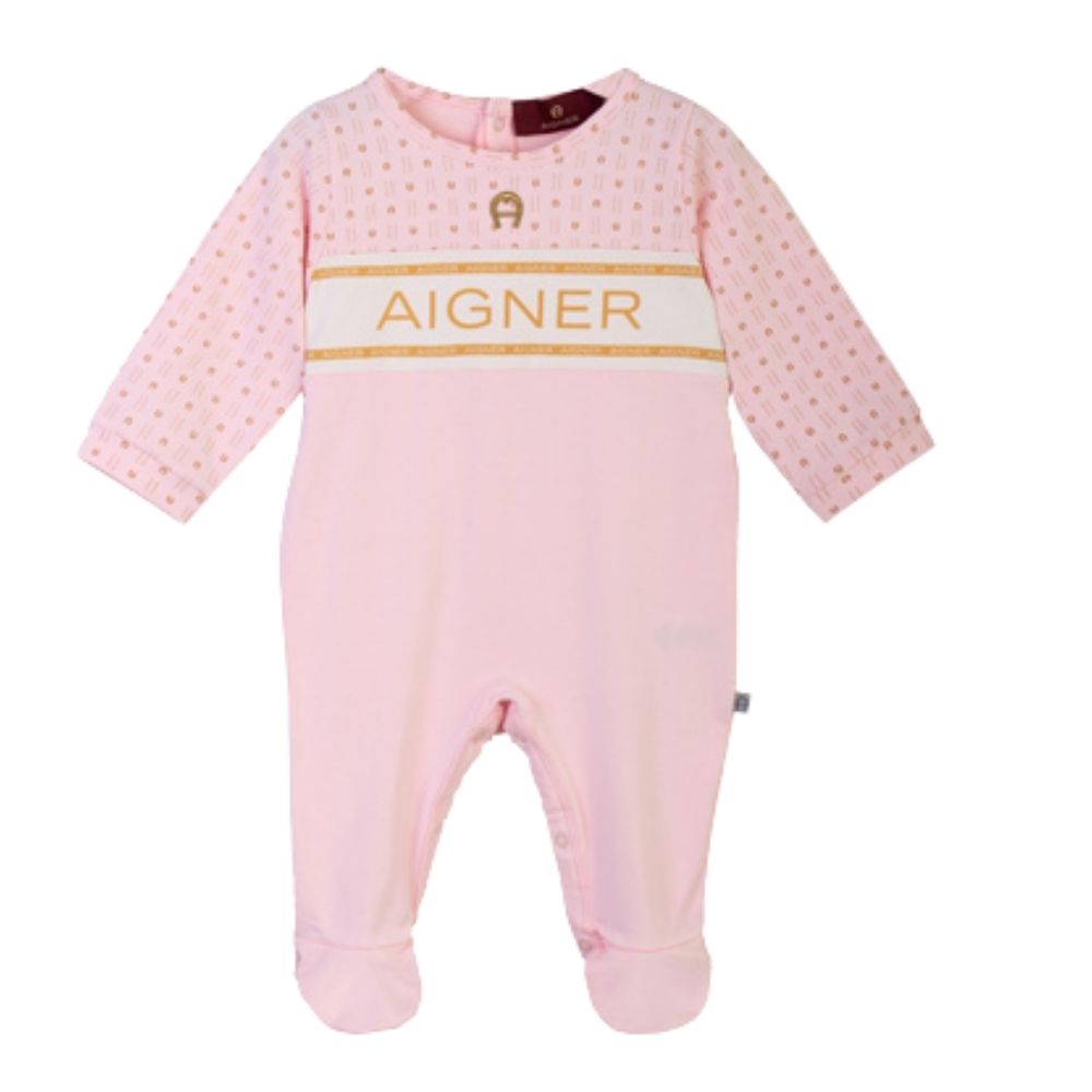 This Aigner baby onesie offers a perfect blend of comfort and style for your little one. Made from a soft, light pink fabric, this onesie ensures a cosy fit, ideal for keeping your baby snug and warm. The design features a simple yet elegant Aigner logo on the chest adding a touch of luxury to this everyday essential. The onesie is designed with convenient snap buttons down the back, making it easy to dress and change your baby. Perfect for both nap time and playtime, this onesie embodies Aigner's commitment to quality and style for even the youngest fashion enthusiasts.