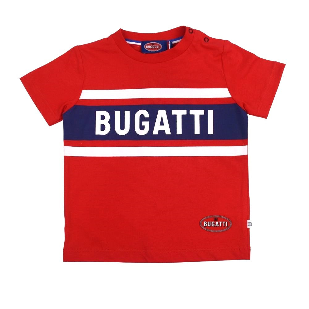 This Bugatti T-shirt is a bold and stylish choice for any young fashion enthusiast. Crafted from soft, breathable fabric, this vibrant red tee features the iconic "BUGATTI" logo prominently displayed across the chest in white and navy stripes, giving it a sporty and dynamic look. The contrasting colors and clean design make it a standout piece that can be easily paired with jeans, shorts, or joggers for a cool and casual outfit. Perfect for everyday wear or special outings, this Bugatti T-shirt combines comfort with a touch of luxury, making it a must-have addition to any child's wardrobe.
