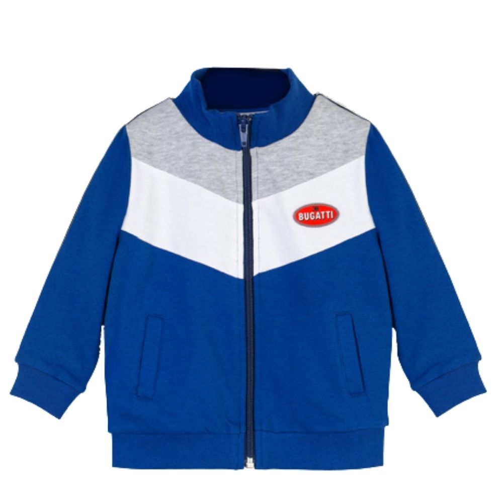 Boys white, blue and grey Zip Jacket and tracksuit pants with logo by Bugatti Kids.