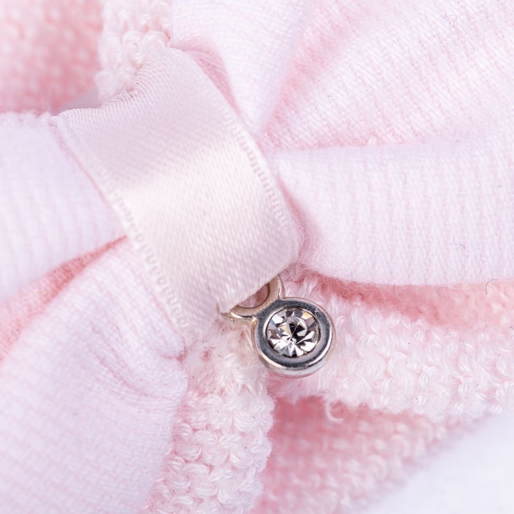 0-6m. This delightful Italian-made baby headband is the perfect blend of sweetness and elegance. Crafted from soft, high-quality materials, the headband features a lovely pale pink crochet design. This charming accessory adds a touch of style to any outfit, while ensuring your baby’s comfort. Ideal for special occasions or everyday wear, this headband is a beautiful expression of Italian craftsmanship, combining both aesthetic appeal and practicality. It’s a must-have accessory for any baby’s wardrobe, offering a timeless, classic look that’s sure to be cherished.