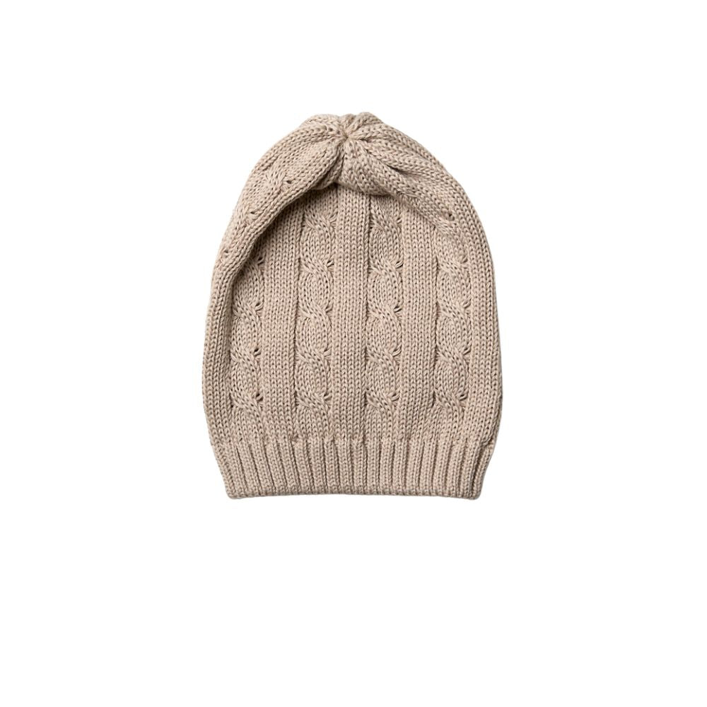 This beautiful Italian-made baby hat is crafted from 100% pure cotton, offering a soft and breathable touch that is gentle on your baby's delicate skin. The hat features a charming cable knit pattern, giving it a timeless and classic look that pairs well with any outfit. Designed with comfort in mind, the hat is lightweight yet cosy, making it perfect for keeping your little one warm in cooler weather. The neutral beige colour adds a touch of sophistication, while the knot detail at the top adds a playful finish. This hat is an excellent choice for parents looking for both style and practicality, reflecting the superior craftsmanship and quality that Italian artisans are renowned for. Whether for daily wear or as a thoughtful gift, this hat is a versatile and essential addition to your baby’s wardrobe.