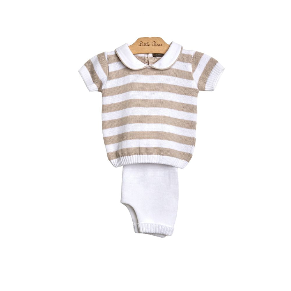 Cotton thread set. Striped shirt and white gaiter with cuff.