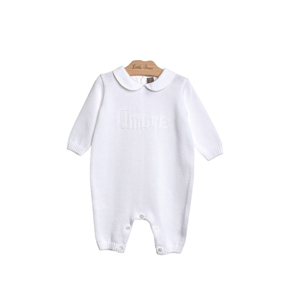 Cotton thread romper with Amore writing, linx workmanship. Collar with cotton piping.