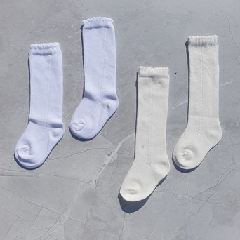 These delicate, knit Knee High are perfect for adding a touch of elegance and warmth to your little one's wardrobe. Available in classic shades of ivory and white, they feature a beautiful, intricate pattern that adds a timeless charm to any outfit. Soft and comfortable, these socks are ideal for pairing with dresses or skirts, providing both style and practicality. Whether for a special occasion or everyday wear, these Knee High are a versatile addition to any child's clothing collection.