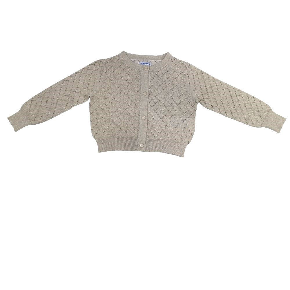 This Mayoral cardigan is a perfect blend of comfort and style, making it an ideal layering piece for your little one. Crafted from soft, high-quality knit fabric, the cardigan features a classic diamond pattern that adds a touch of elegance to its simple design. The neutral beige colour makes it versatile and easy to pair with a variety of outfits, whether for casual wear or a more dressed-up occasion. The button-down front allows for easy dressing, while the ribbed cuffs and hem ensure a snug, comfortable fit. Perfect for keeping your child warm during cooler days, this Mayoral cardigan is a must-have addition to their wardrobe.